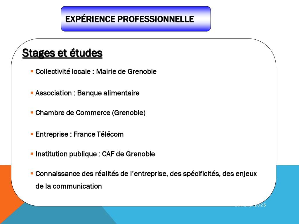 1993 – 1995 : DUT Information – Communication à l’IUT 2 de Grenoble. Option : Communication d’entreprise. Juin 1995.