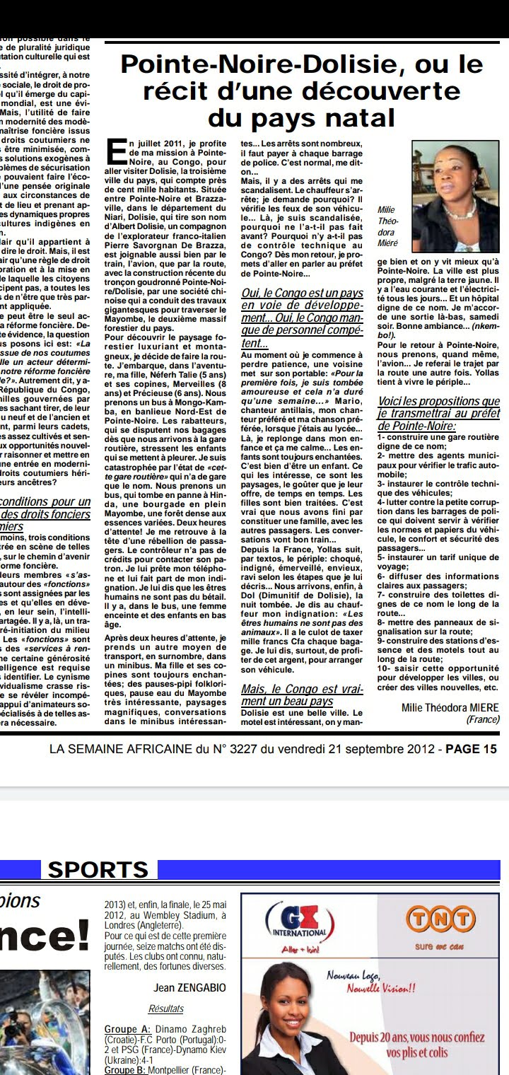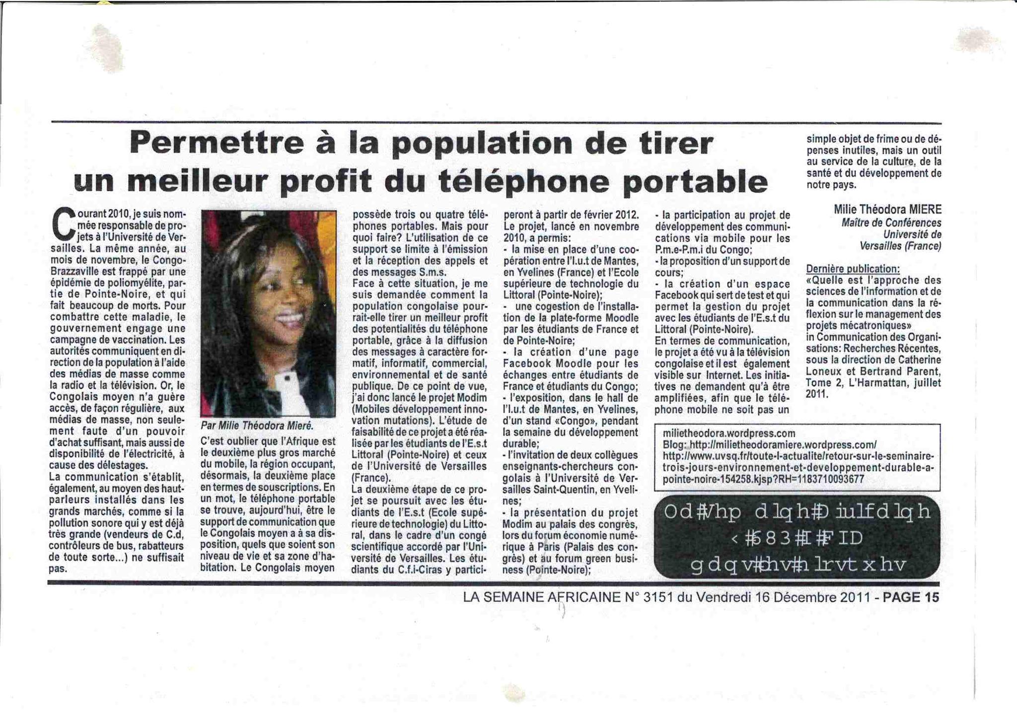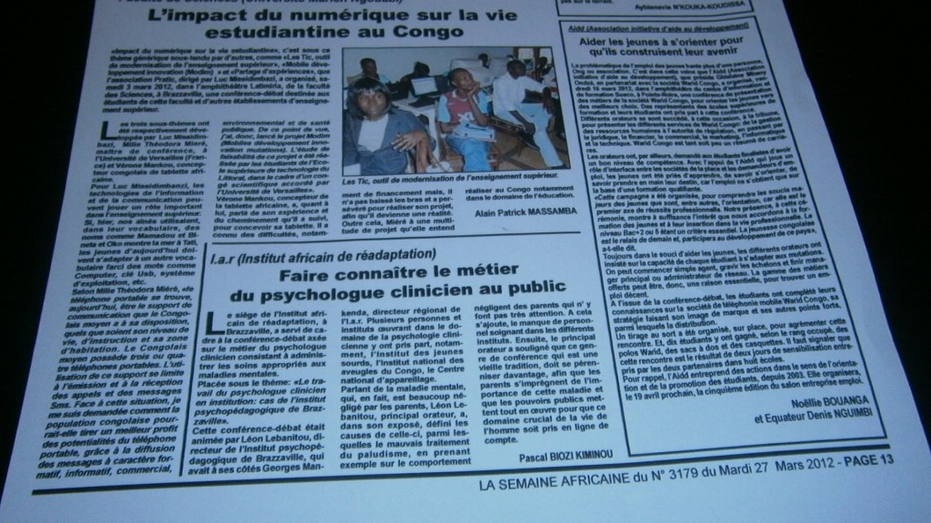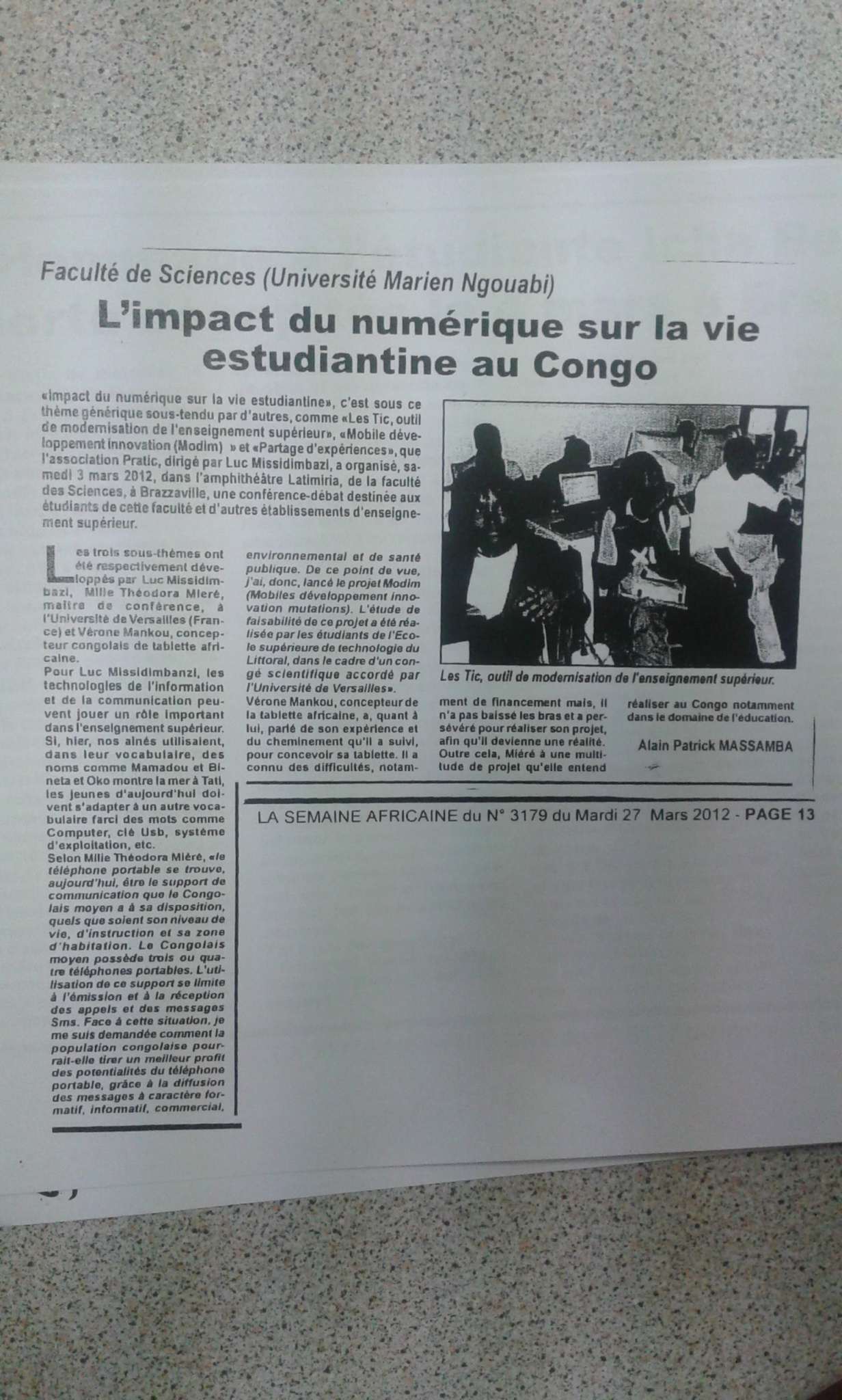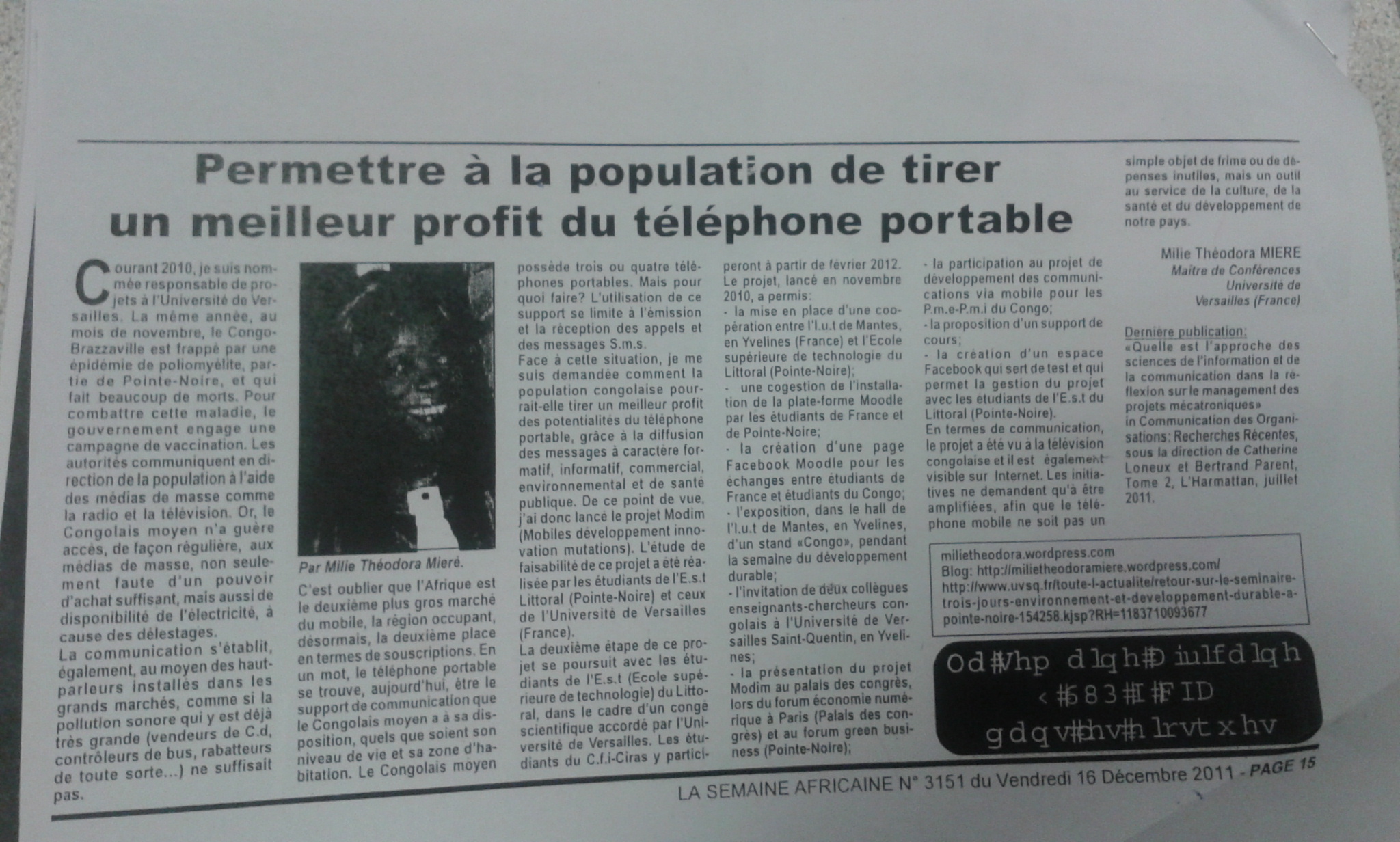 Dans la Presse Milie Miéré dévoile l’âme des entreprises congolaises Miéré révèle les secrets des cultures d’entreprise Culture d’entreprise : le pavé savant de Miéré OLYMPUS DIGITAL CAMERA OLYMPUS DIGITAL CAMERA OLYMPUS DIGITAL CAMERA Dernier passage sur TV Congo, mars 2014, émission symbiose pour parler TIC, Education, Diaspora, etc. Partager : Partager sur X(ouvre dans une nouvelle fenêtre) X Partager sur Facebook(ouvre dans une nouvelle fenêtre) Facebook J’aime chargement…